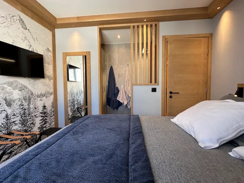 L'appartement dispose de trois chambres avec salles de bains privatives, chacune ayant son identité propre :